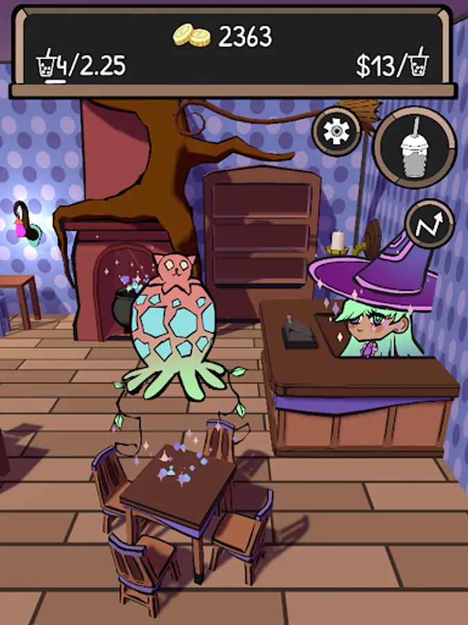 Use your witch powers to magically create boba and run your shop! Tap to generate your drinks and watch your sales rise.