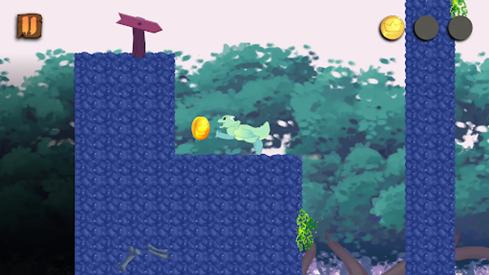 • One-button platforming mechanics