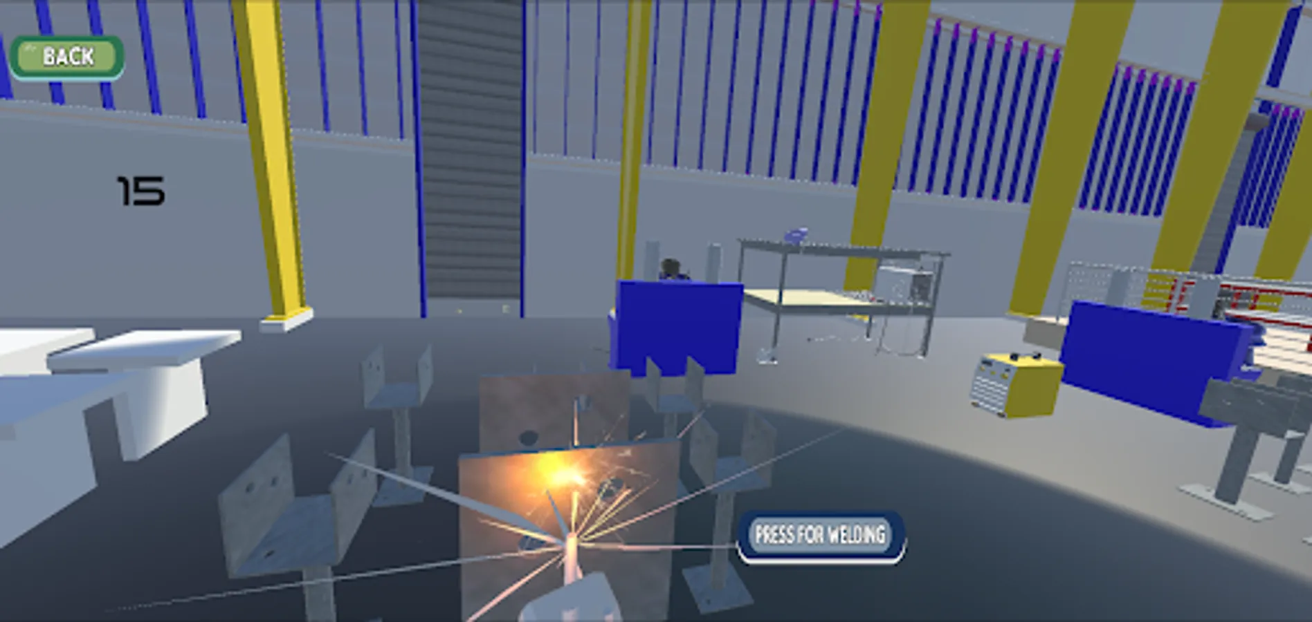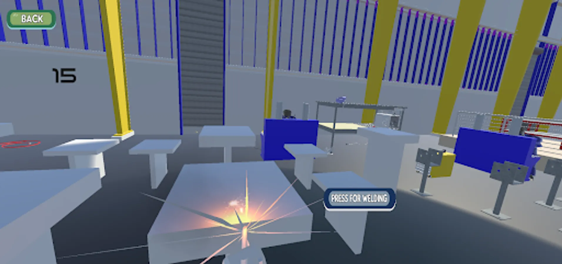 FPS players travel the environment and find the Arc Welding Lab making scene indicator. After reaching the factory lab they found different types of operations and levels. After successfully completing the level they back to the arc welding factory where they will find the indicator for searching for the next level indicator. After completing all the levels player will go back where started.