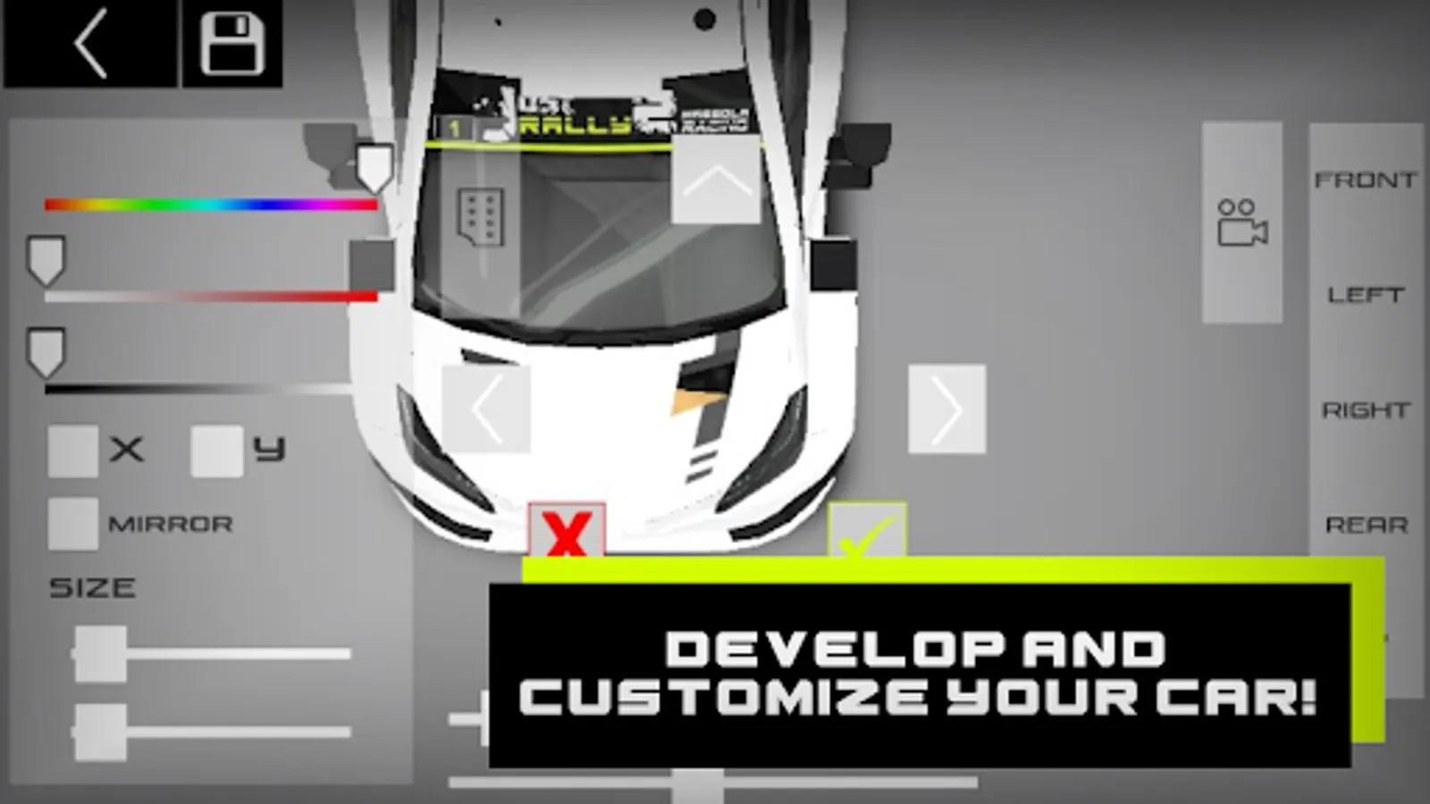 -Develop car parts, create your own setups in the detailed setup menu raging from differential maps to engine radiator opening!