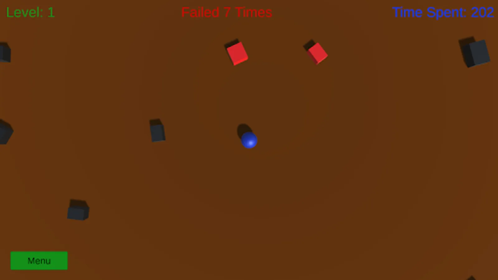 The player avoids obstacles and tries to reach the goal. What makes this very difficult is the constantly changing controls! Every few seconds, the controls are completely randomized. One moment the player might be going down but fall off the next moment because of going left.