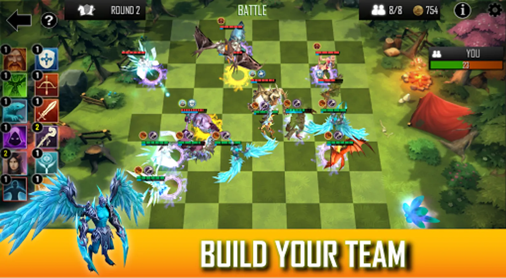 • Set your autochess hero free on 8x8 wide field! Freely arrange the position of the hero on the board, manage and check their stats.