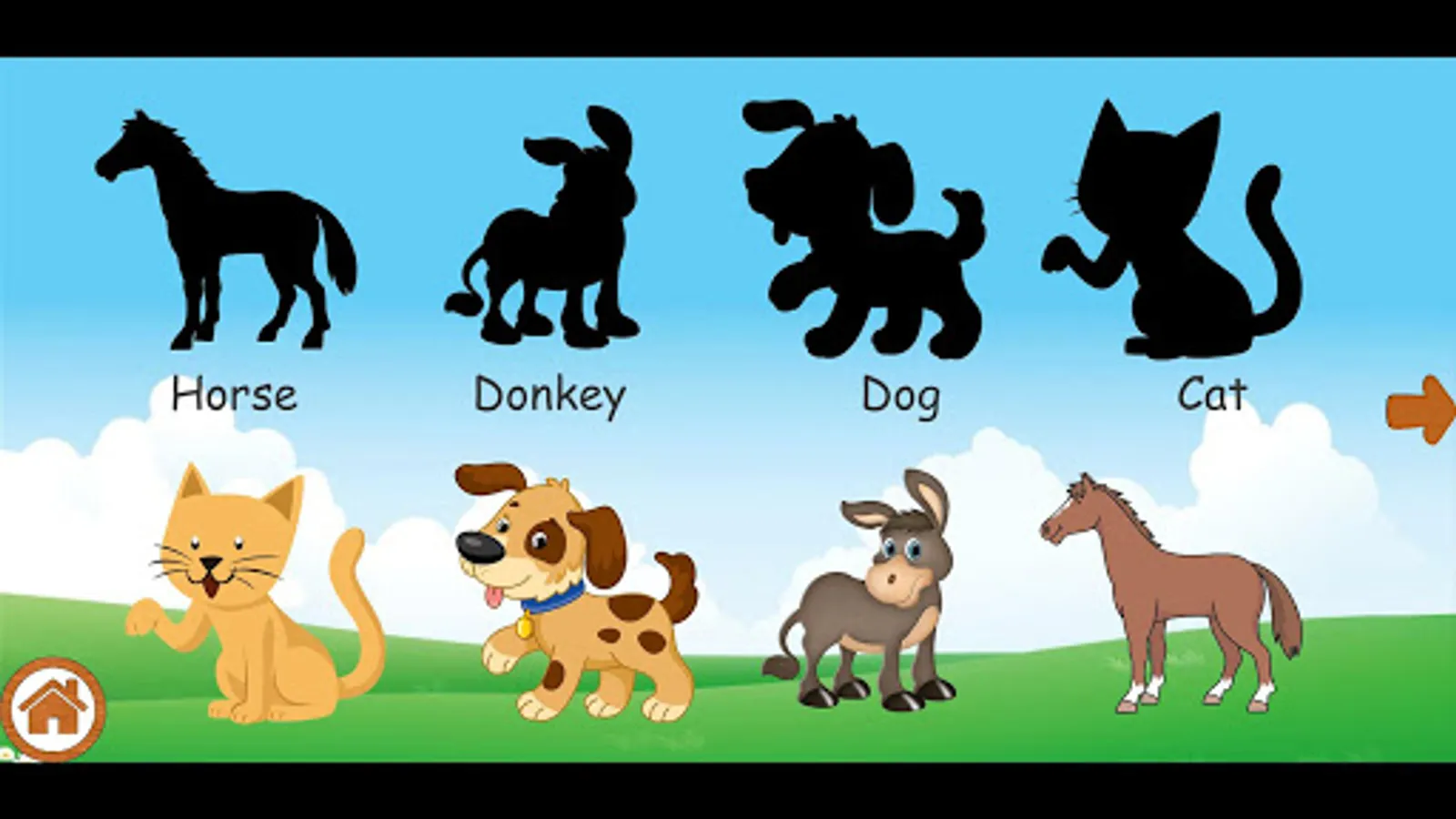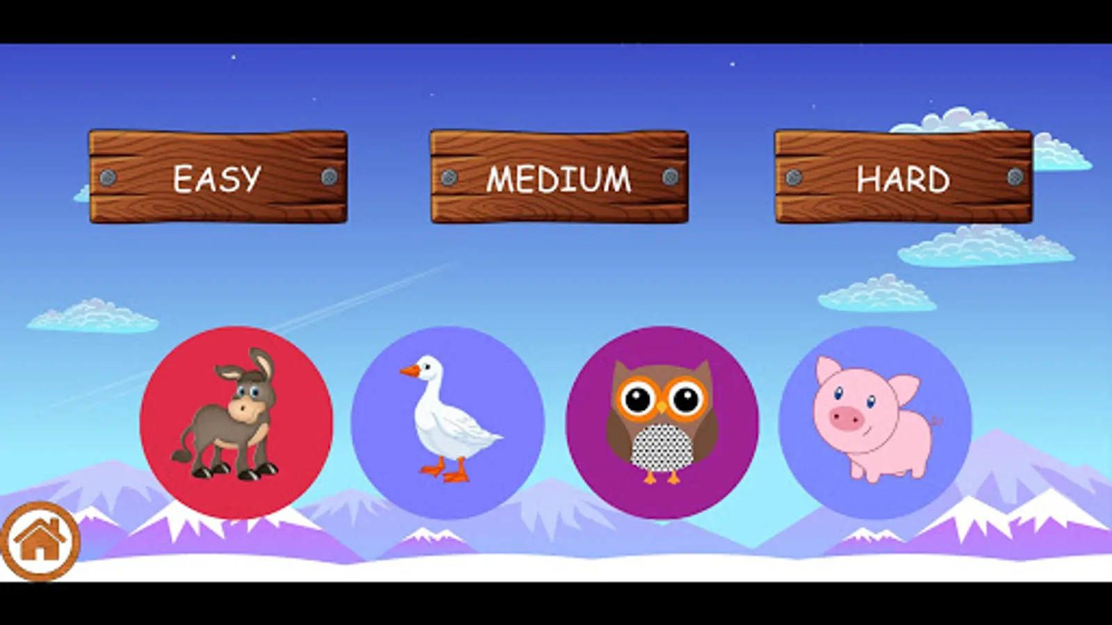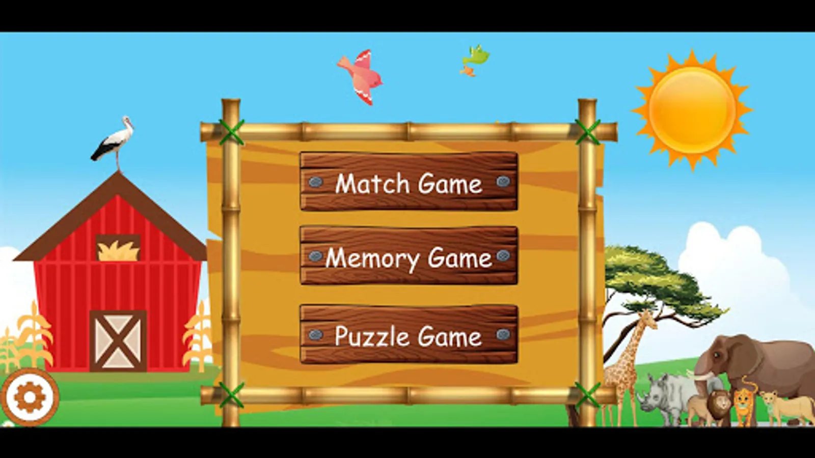 In the match game, you can find 20 different animals with each own sound. In memory game you can play in 3 levels (easy, medium and hard) with different animals that need to find each other. And for puzzle game are created 3 different pictures that need to create with rotating each picture box in the right position.