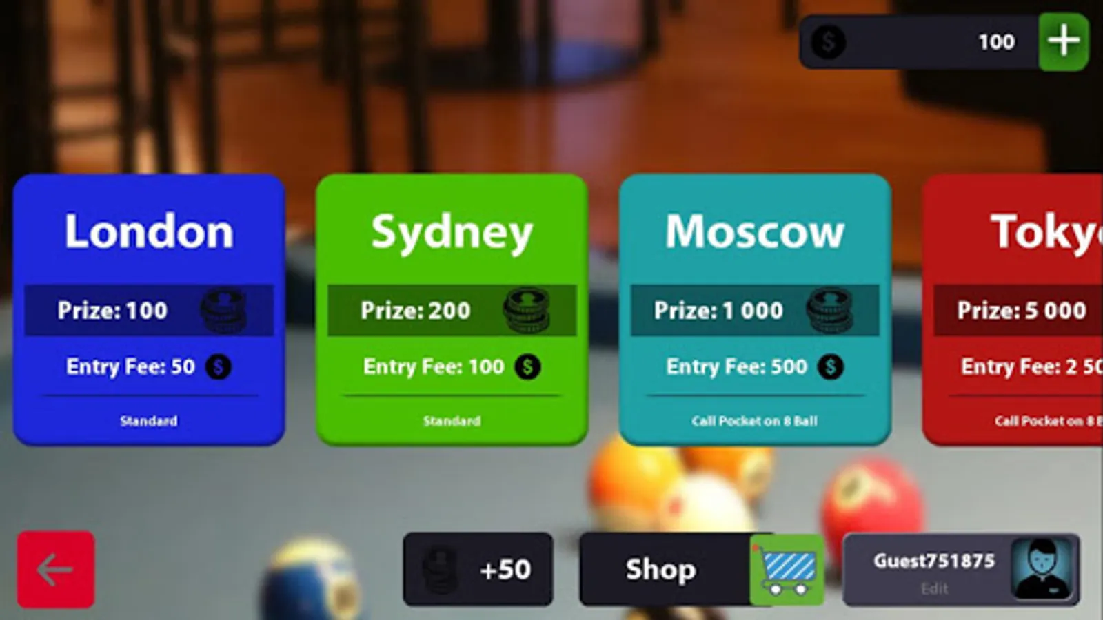 Customize your cue and table! In every competitive 1-vs-1 match you play, there’ll be Pool Coins at stake – win the match and the Coins are yours. You can use these to enter higher ranked matches with bigger stakes, or to buy new items in the Pool Shop.