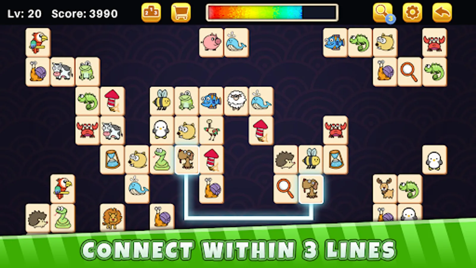 ★ Remove 2 animals with the same kind which can be connected within 3 lines.