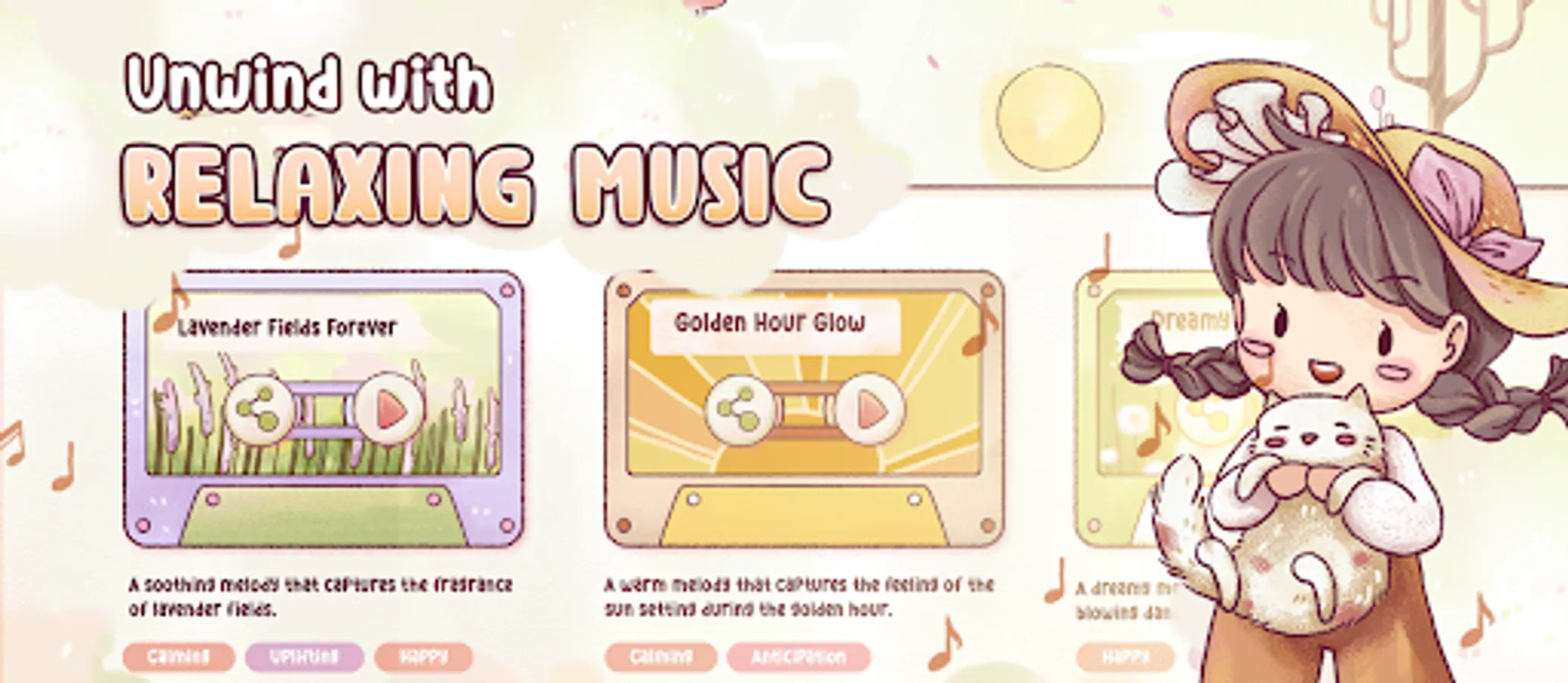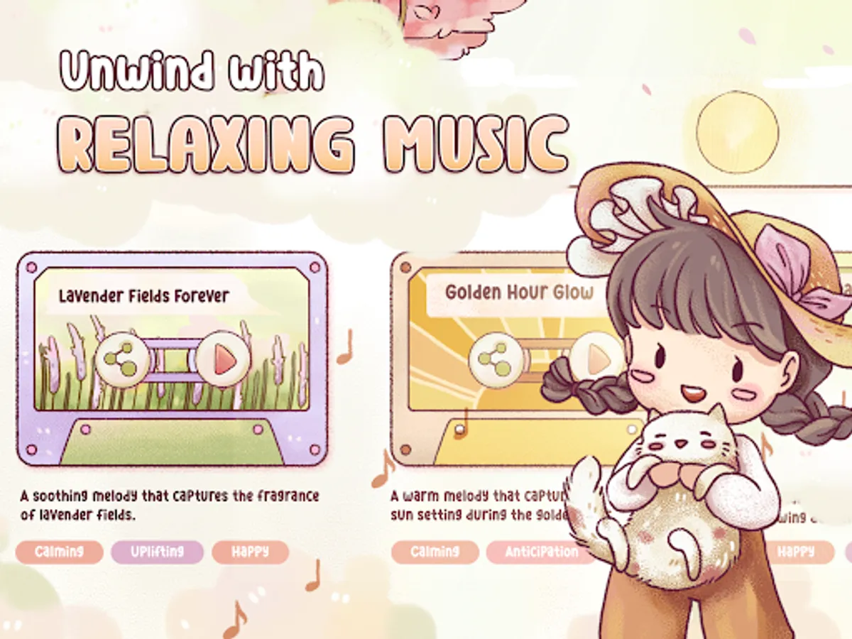 - Unlock relaxing mini-games and songs in Ryah's studio for a calm, laid back gaming experience