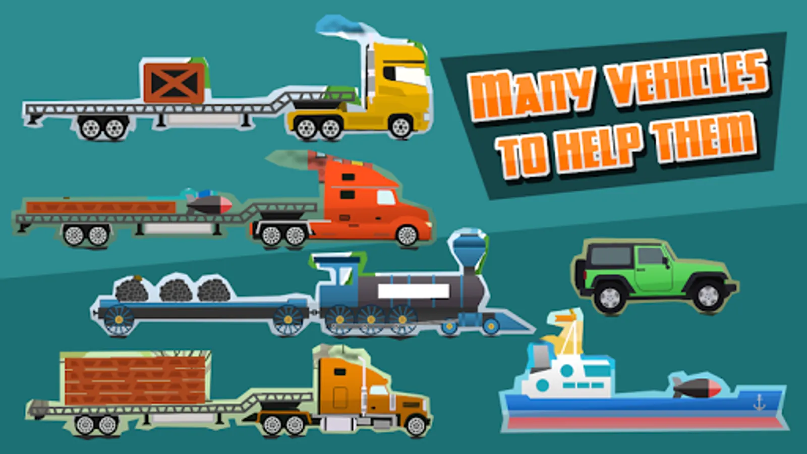 โ๏ธ many vehicles that need your help, and including truck, ship, train or jeep ๐