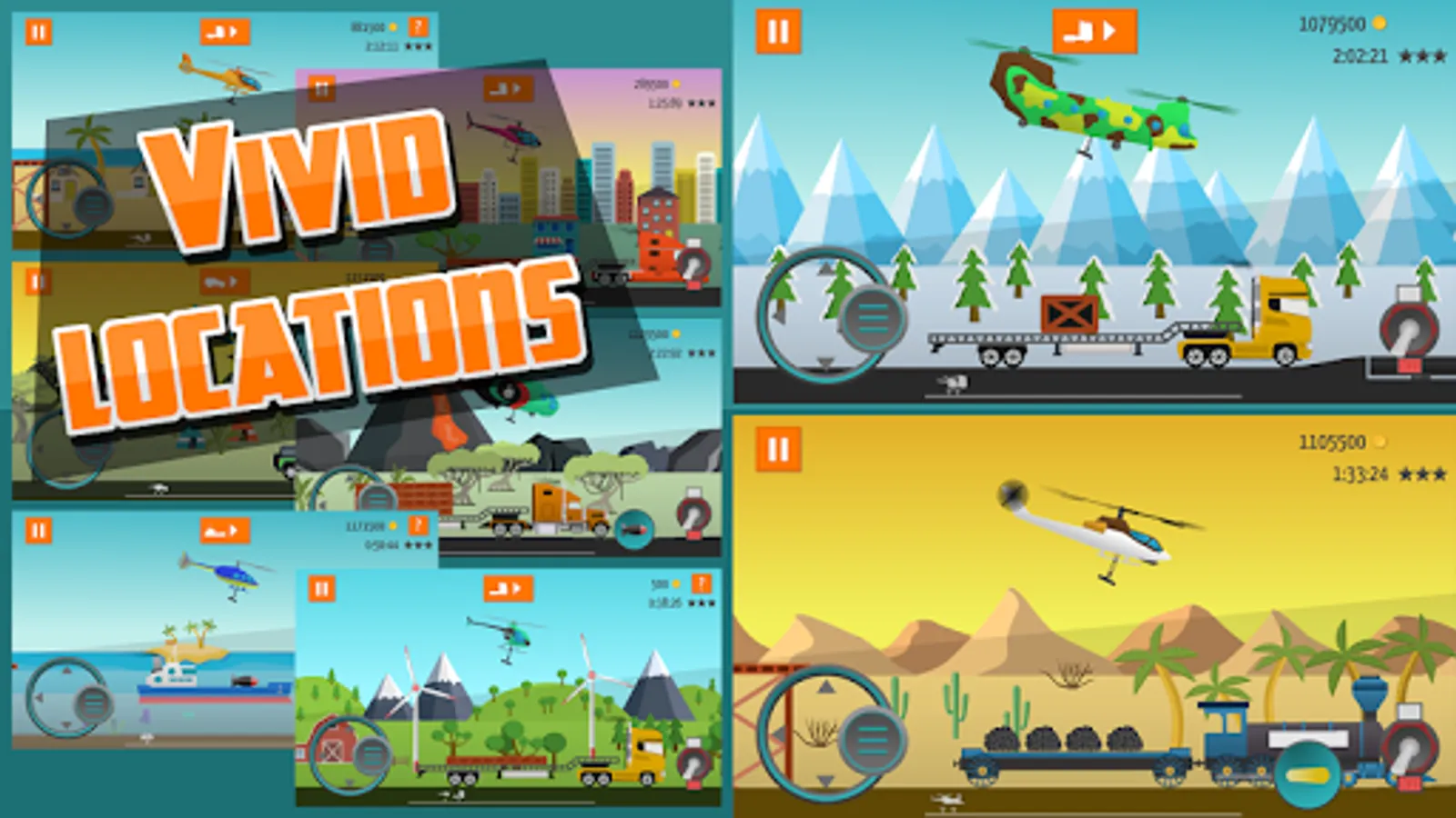 Go Helicopter is a game full of puzzles and other elements of variety to the gameplay. In addition, you will find here: