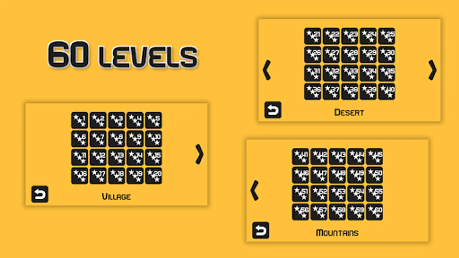 ✔️ 3 worlds: Village, Desert, Mountains ⛰️