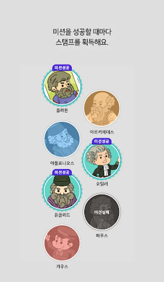 - Earn one stamp each time you meet a mathematician and solve a mission. Increase achievement motivation through the stamp system.