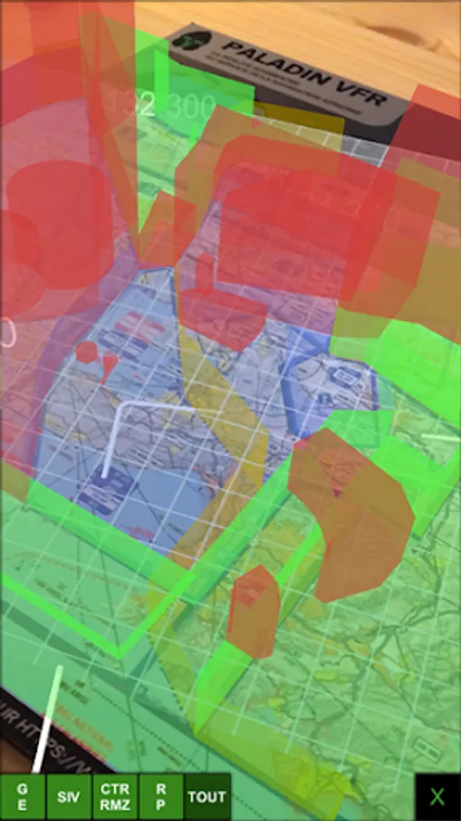 Using augmented reality, Paladin VFR Pro displays "clearance free" zones (G and E spaces) as well as SIV limits (and their frequencies), R, P zones, CTRs and RMZs.