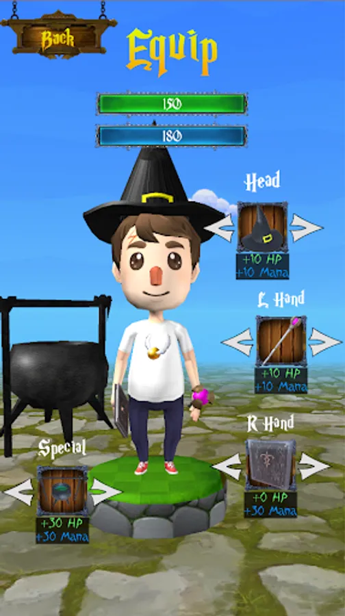 Player can collect many magic things like a hats, staffs, potions etc.....