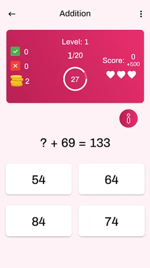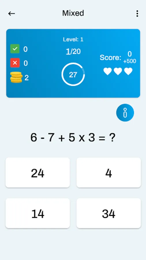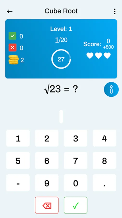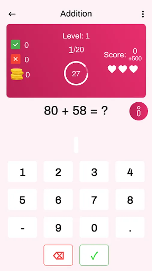 * Addition, subtraction, multiplication, square root .... total 13 types of quiz category with 30 levels.