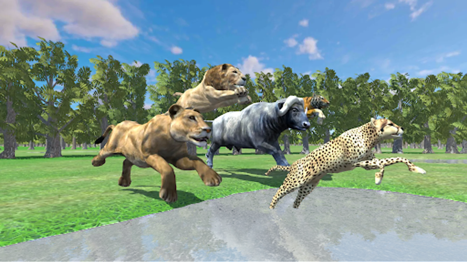 Amazing Tiger Cheetah Lion Race Game animation in Wild Animals Race Simulator 3D.