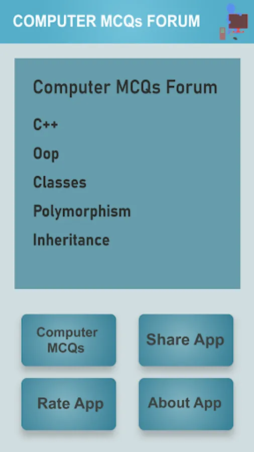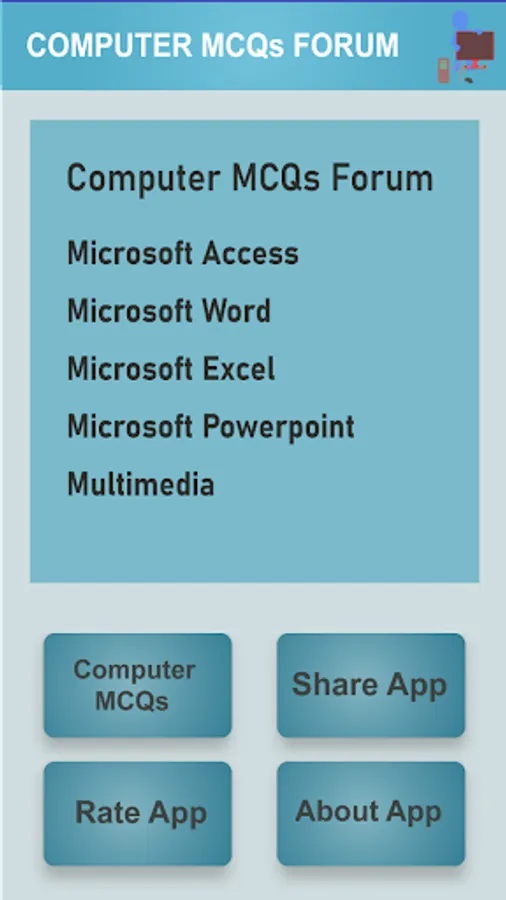 This is an application having Computer MCQs offline for exam preparation. This application will be very helpful for the persons who are continuously applying for jobs and students who are preparing for Computer graphics MCQs and Computer ms office MCQs exams. This application contain about more than 4000 multiple choice question with answers for 2nd year Computer MCQs students. This application also contain Basic Computer MCQs for 12th class Computer students.