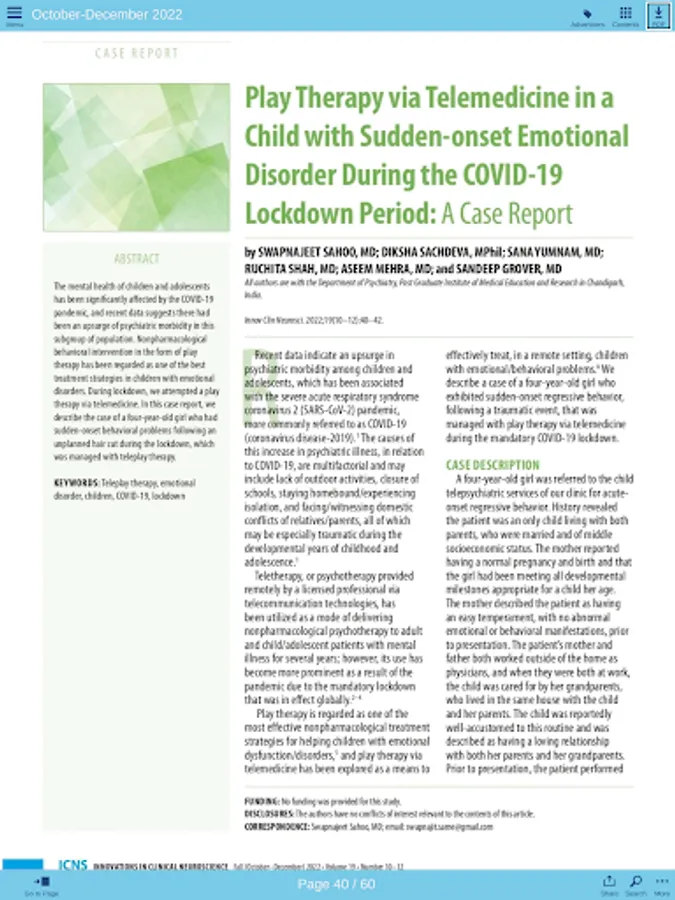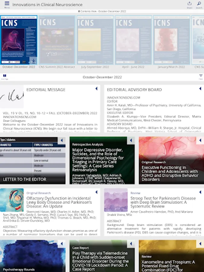 Innovations in Clinical Neuroscience (ICNS) is a peer-reviewed, electronic publication that has become an important addition to the field of neuroscience. Under the expert editorial leadership of Amir Kalali, MD, ICNS provides evidence-based information in a practical, easy-to-read format for practicing clinicians, investigators, industry scientists, and other entities involved in the field of neuroscience. ICNS translates the vast amounts of CNS research into applicable information that aims to inform practicing clinicians on the latest treatment options in psychiatry and neurology, as well as investigators and scientists on the latest innovations in the drug development arena. ICNS offers its readers original research, practical discussions on the latest research, comprehensive reviews, brief reports on important, but limited data, didactic case reports, and provocative commentaries on contemporary topics in neuroscience. Articles are—written by key opinion leaders as well as practicing clinicians who are “in the trenches, —providing vital balance to the research-rich literature that is already available. ICNS is published by Matrix Medical Communications in West Chester, Penn., USA, and is indexed on PubMed Central, PsycINFO, CINAHL Plus with Full Text, Scopus, and EMBASE.