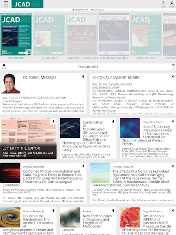 Journal of Clinical and Aesthetic Dermatology (JCAD) is a peer-reviewed publication that has already become an important addition to the field of dermatology. Under the expert editorial leadership of James Del Rosso, DO, and Philip Werschler, MD, JCAD provides dermatologists with up-to-date, evidence-based information that can be applied to their daily practices. JCAD offers its readers original research, practical discussion on the latest research, comprehensive reviews, didactic case reports, and provocative commentaries on contemporary topics relating to both clinical and aesthetic dermatology, written by key opinion leaders as well as practicing clinicians who are “in the trenches,” providing vital balance to the research-rich literature that is already available. JCAD is the official journal of the American Cutaneous Oncology Society and the American Acne and Rosacea Society. JCAD is indexed on PubMed Central, Scopus, EMBASE, and CINAHL Plus.