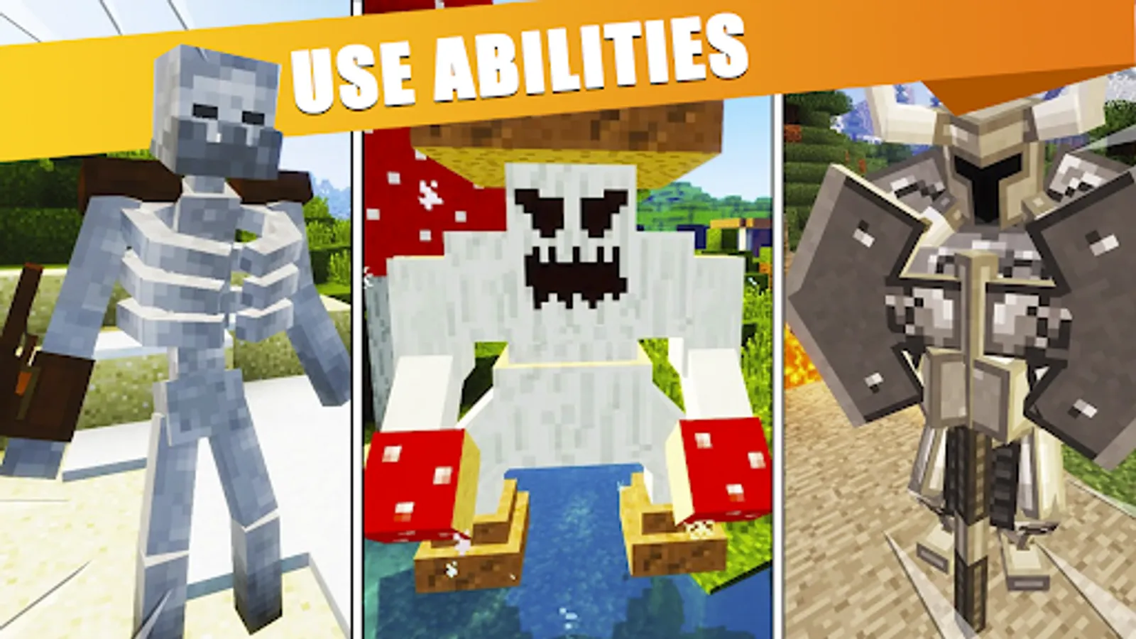 500 mobs mod for Minecraft Pocket Edition adds great variety of bosses, creepers, npc and mob! You can use different items with them, speak and interact in any way.