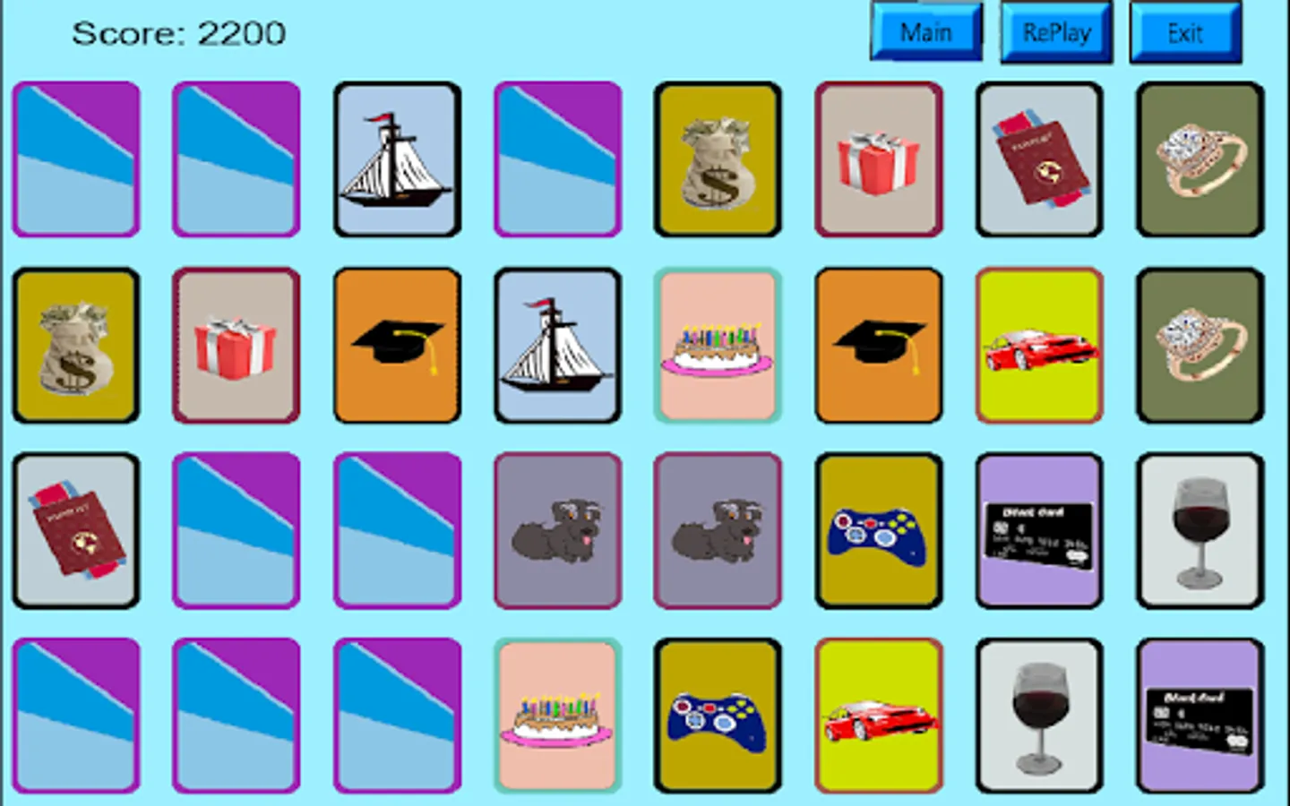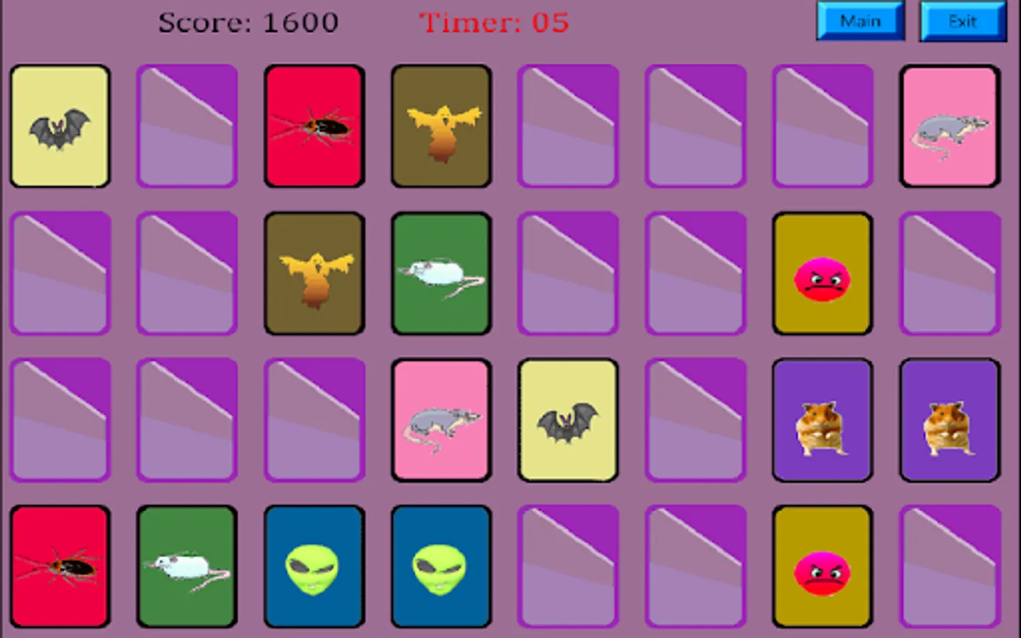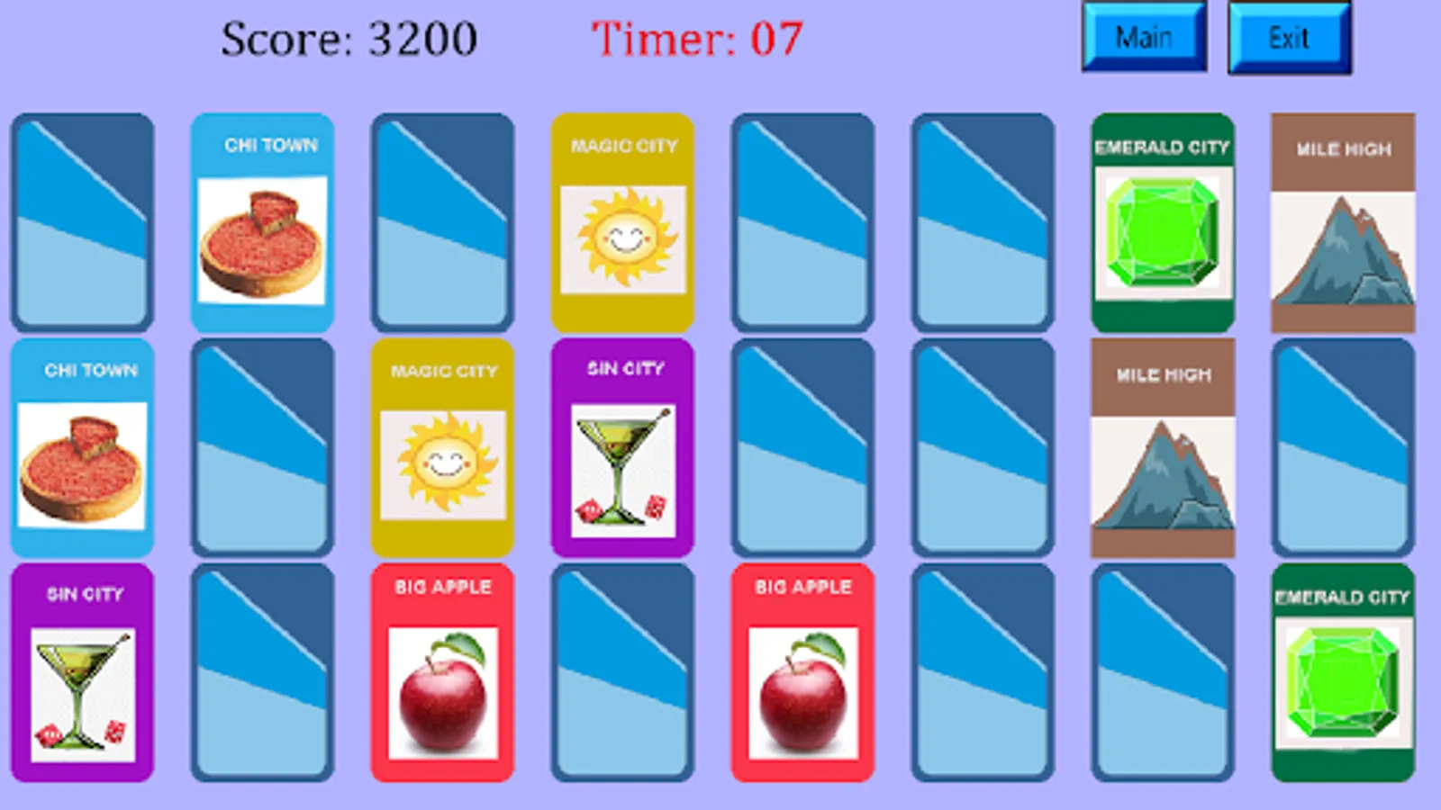 MatchUp Memory Fun. There are 4 games to choose from. The challenges range from easy to hard, which are broken down into 2 categories, Take your time games and Timed games.