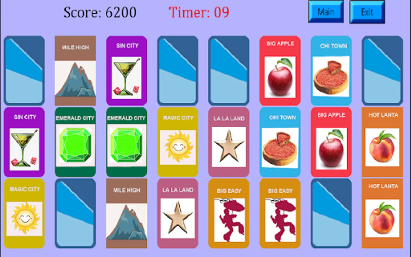 The timed games; (Game 1), Nicknames of U.S cities, game play 40 seconds, which consist of US cities and the names we love to call them. For example Chi Town, The Big Apple, LaLa Land, HotLanta and many more with 12 matches. (Game 2), Creepy Creatures, game play 60 seconds, which consist of creepy creatures from our Crazy Exterminator Game(release in 2020) with 16 matches.
