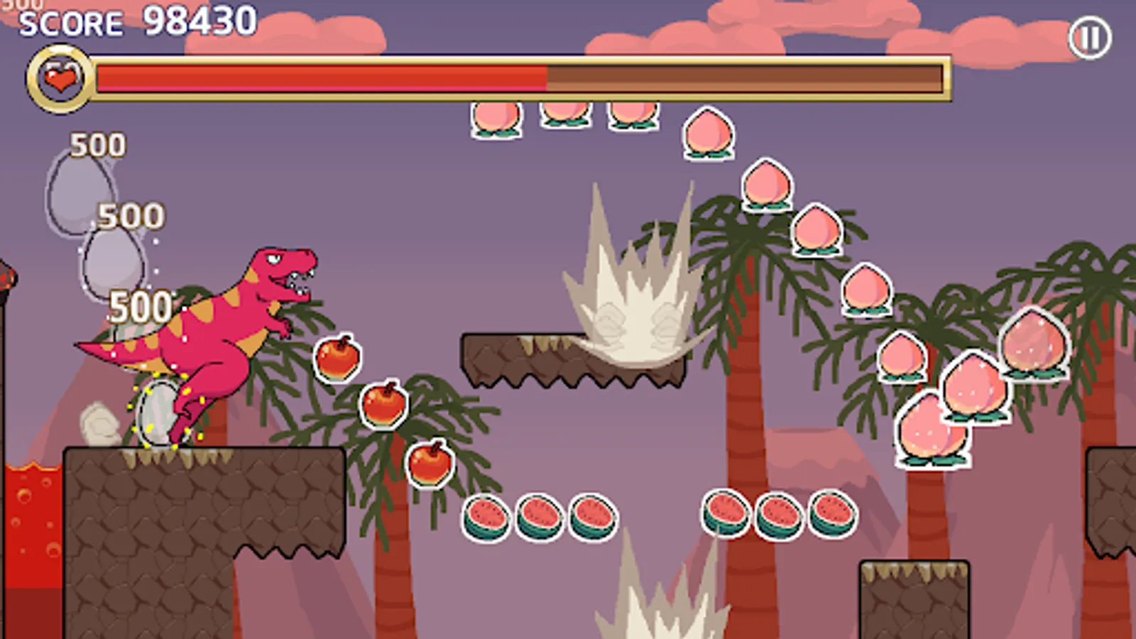 Guide your Dinosaur to run across the fields and collect various fruits.