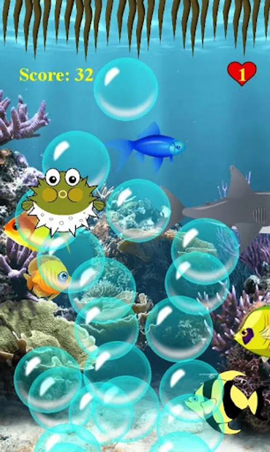 A wonderful setting with fish in the background as you pop the bubbles, realistic sounds and a very cool interactive menu.