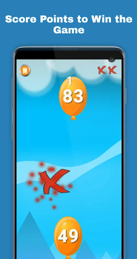 ⦁ Balloons rises up continuously from bottom to top. Every balloon has a health displayed on it.