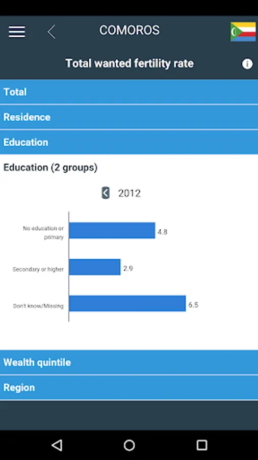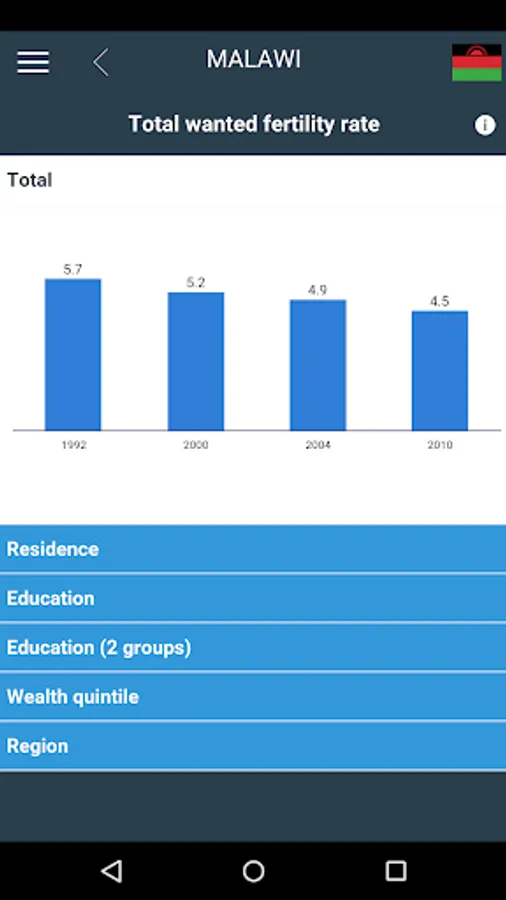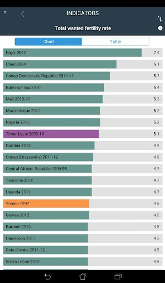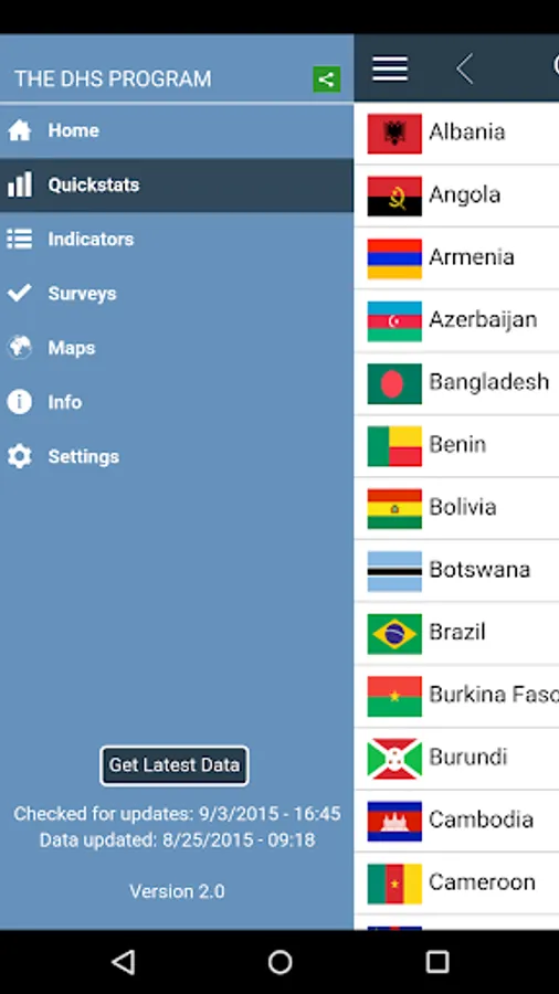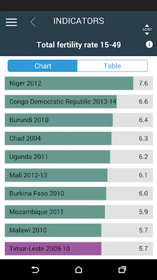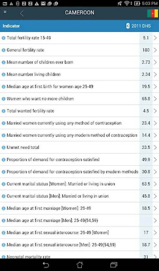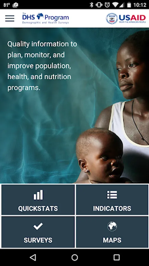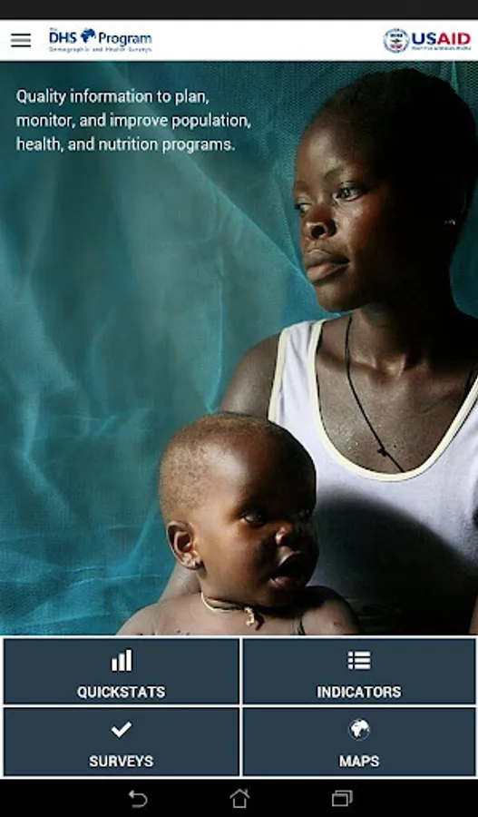 Quick access to downloadable survey information and statistics from the USAID-funded Demographic and Health Surveys. The DHS Program has carried out more than 300 surveys in 90+ countries. The surveys collect information on fertility and family planning, maternal and child health, child mortality, nutrition, malaria, HIV/AIDS, and many other health topics. The DHS Program application provides indicator tables, charts, maps, and trend data from the Demographic and Health Surveys, as well as survey information, and quick links to survey-related publications. The DHS Program application was formerly named MEASURE DHS Mobile.