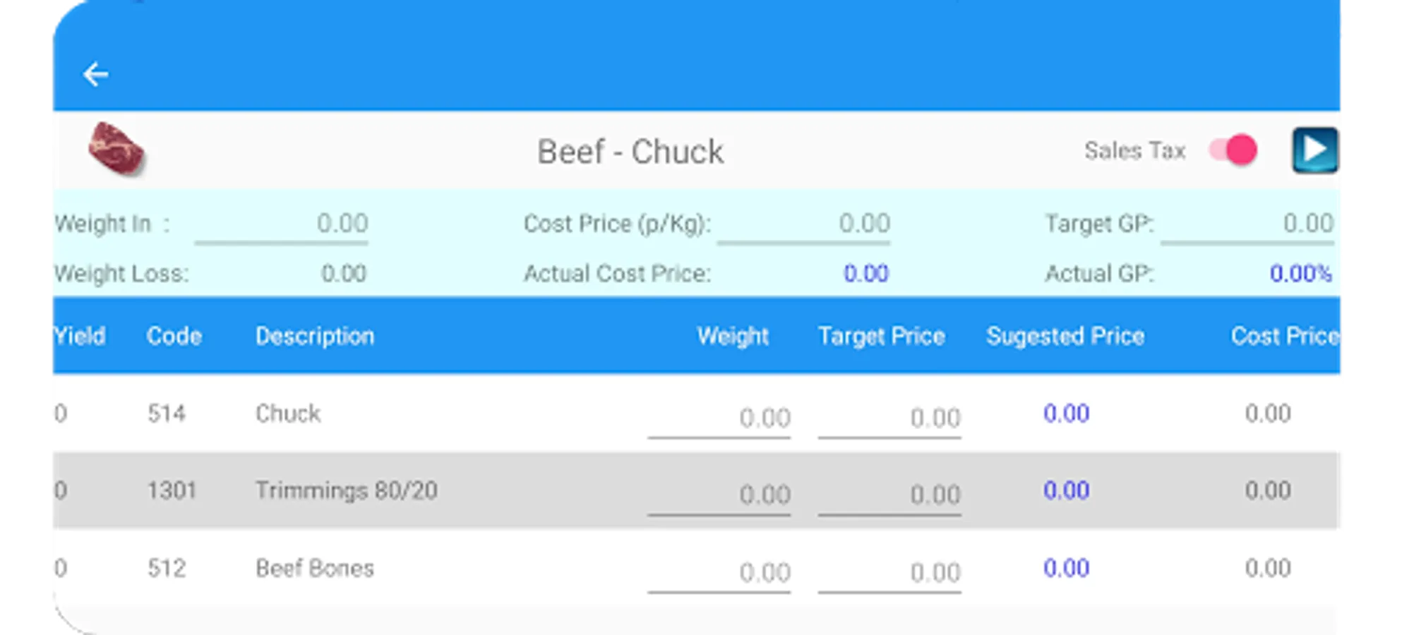 Meat Block Pro has been designed to accurately cost and supply a suggested retail price, based on your input values for any selected meat cut. It's the perfect meat costing and gross profit management tool. Select any of our industry standard block tests to accurately cost your cut and boost your profitability. Block Tests includes Beef, Lamb and Pork.