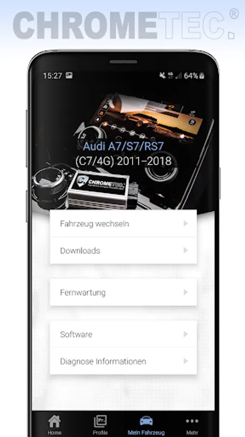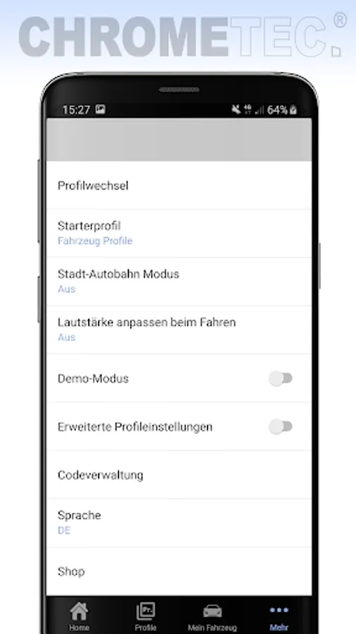 So far, the plants have been operated using the original key to the vehicle and set. is now CHROMETEC. go one better! In parallel to operation via the original key to the vehicle, the sound can now also use this app.