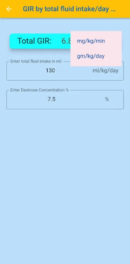 -first is to enter dextrose concentration in iv fluids and TFI (total fluid intake) in ml/kg/day.