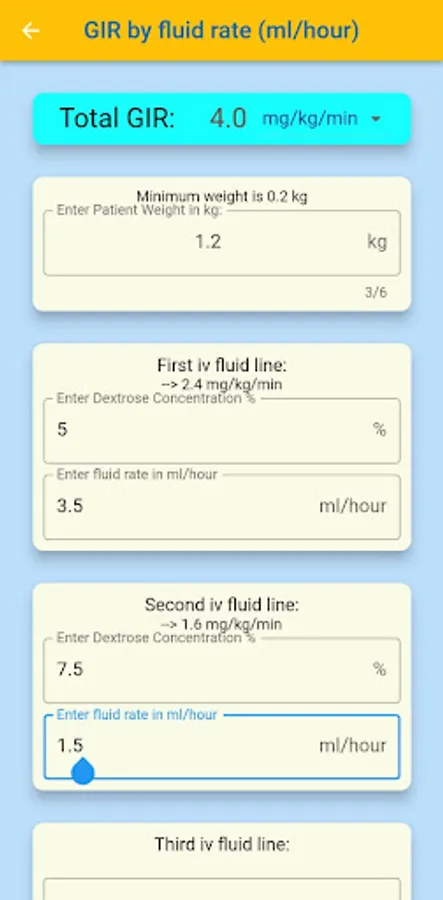 This app helps physicians and medical staff calculate glucose infusion rate (GIR) from multiple iv fluid lines & prepare different concentrations of glucose solutions.