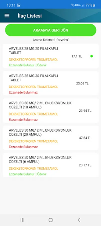 * See the equivalent drugs and the prices of these drugs