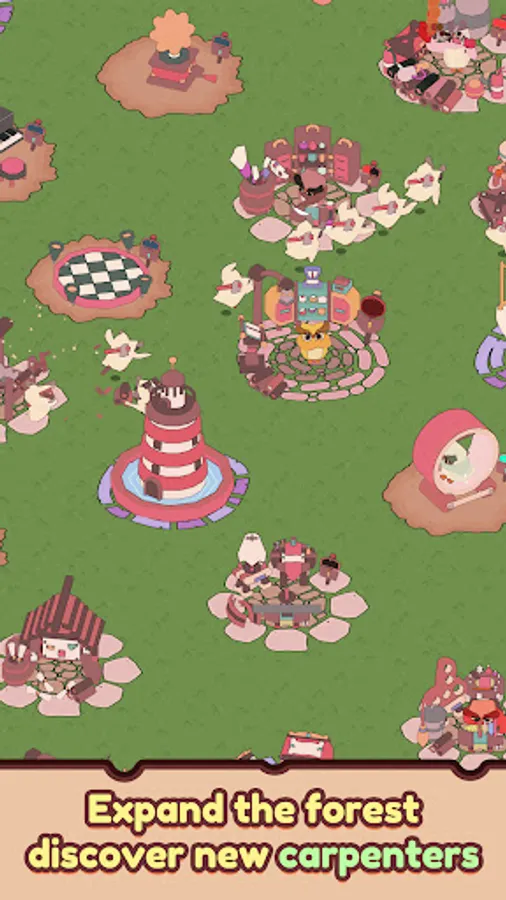 The forest is an idle environment, with carpenter owls working with joy to help you build your lumber empire. But running a lumber business isn't easy, so don't forget to dig the soil to feed your carpenter owls with worms and give them a peaceful environment to work even faster.