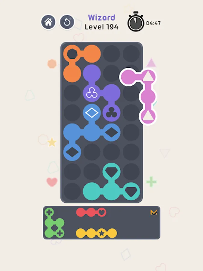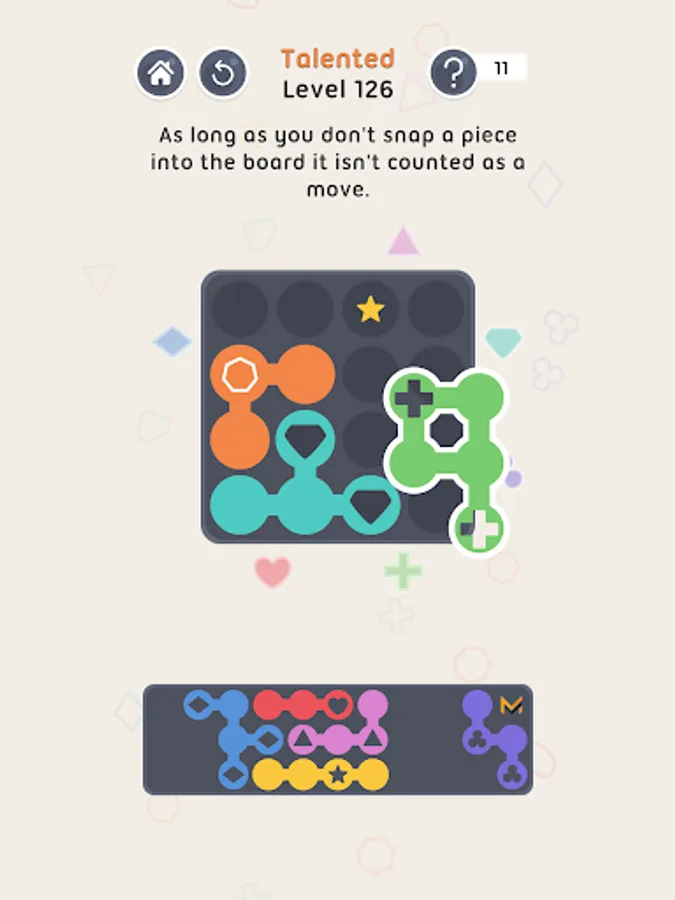 Fitit is a brain teasing puzzle experience. Move, rotate and fit up to 8 pieces to fill the board in unique patterns! Make sure to put the right pieces on the right icons. There are hundreds of levels from easy to extremely difficult. Can you fit them all?