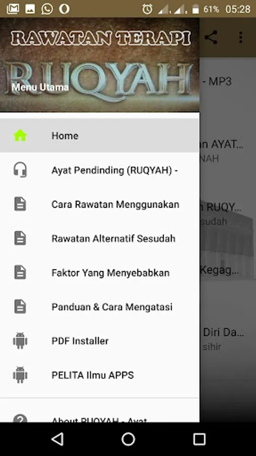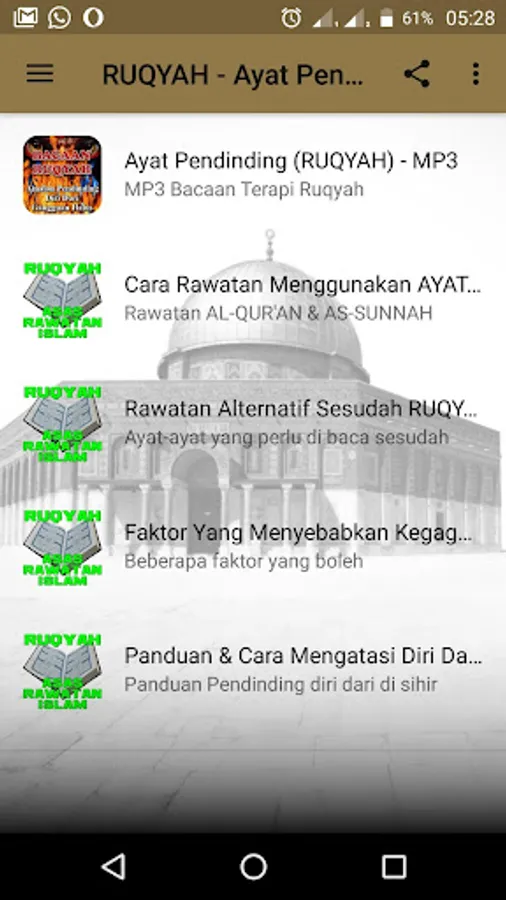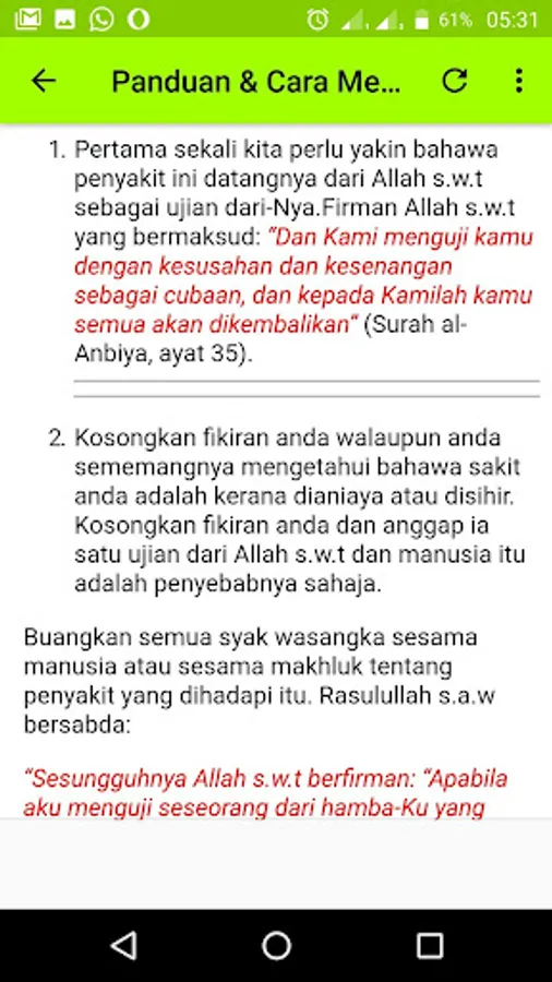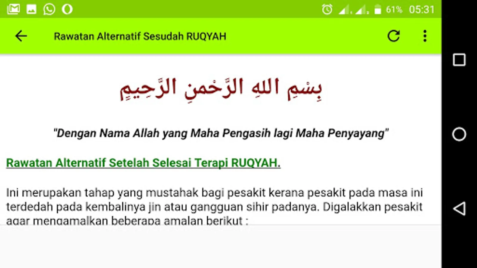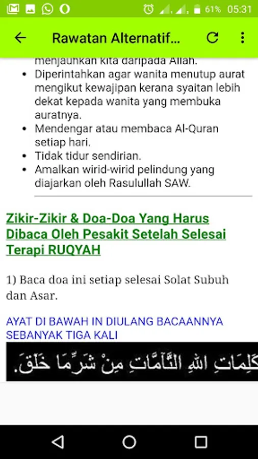 Selain memperdengarkan Ayat-Ayat RUQYAH ini, kita juga perlu mengikut beberapa panduan rawatan seterusnya apabila sesudah selesai RUQYAH. Semua panduan rawatan ini terdapat di dalam aplikasi ini.
