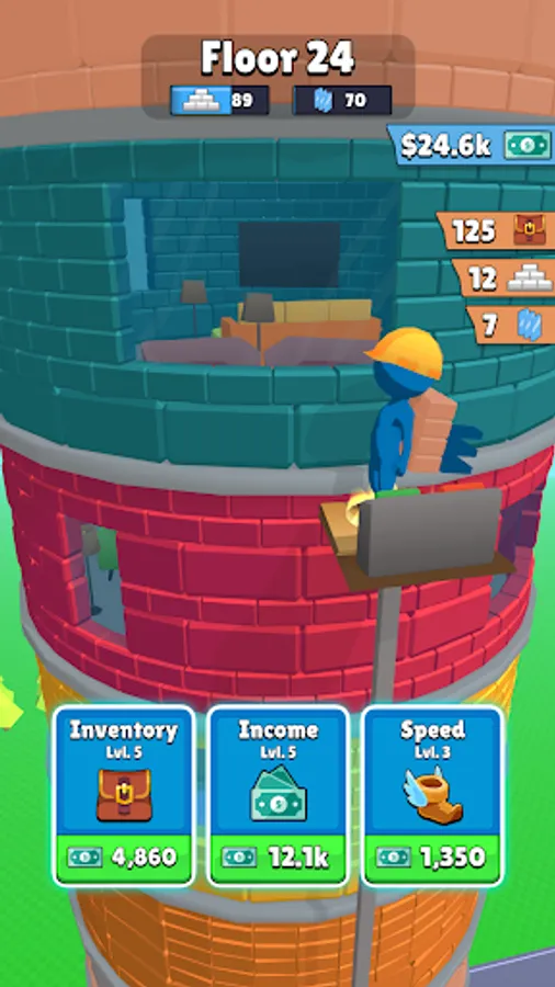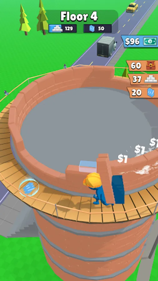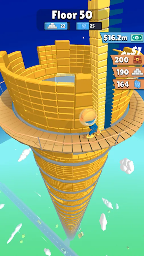 Run around your work area to collect resources, upgrade your company, and improve your character. Then take the elevator up to build a tower to the sky. Keep going until you have the tallest tower and the best construction company in the world!