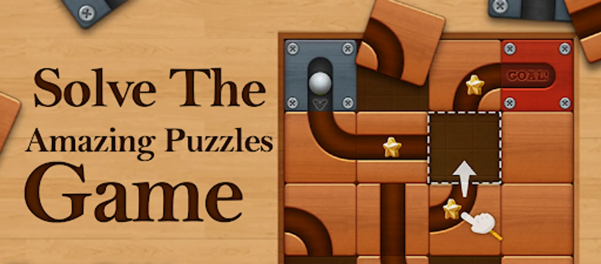 Roll the Ball- Slide puzzle is a classic tile puzzle with a modern challenging twist. Move the sliding tiles to unblock a path for the steel ball to roll to the exit. Enjoy the satisfaction of seeing the ball roll smoothly through the connected tiles to the end.