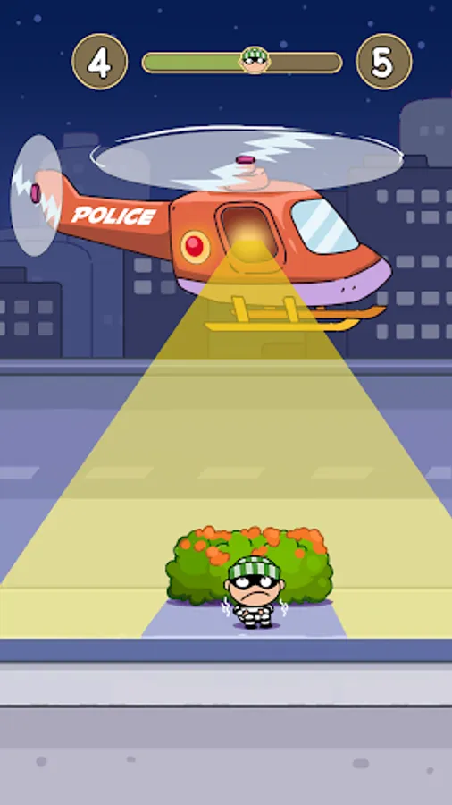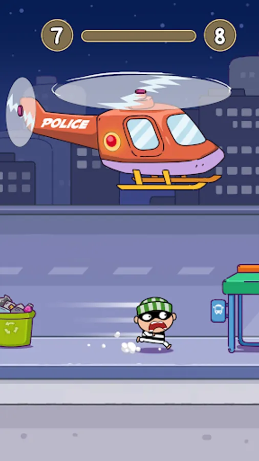 Control the little robber, hide from the helicopters on the street and aim for the goal!