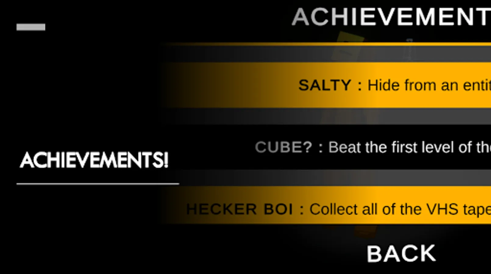 In this game, you basically collect all of the 35 VHS to run the computer.... And the exit will be opened for you! But, also look out for the monster (Howler) finding you! It can't see you but at least can hear you! You can also use 2 fire alarms to distract that creature for some time.... but, you can only use it once.