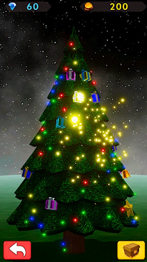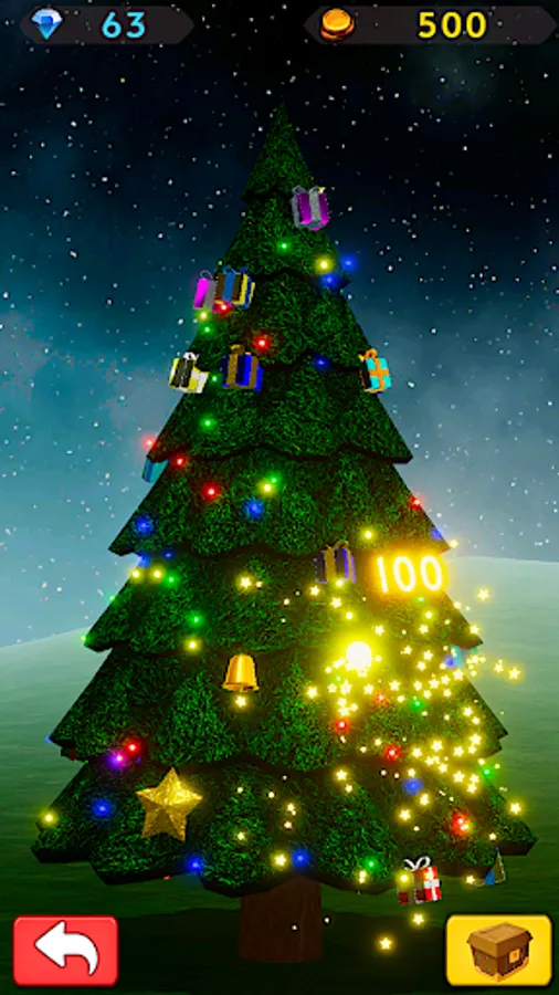 The game starts with a few decorations available, as you gather points, you´ll get diamonds that can spend on new decorations, you can have more than 80 on the same tree.