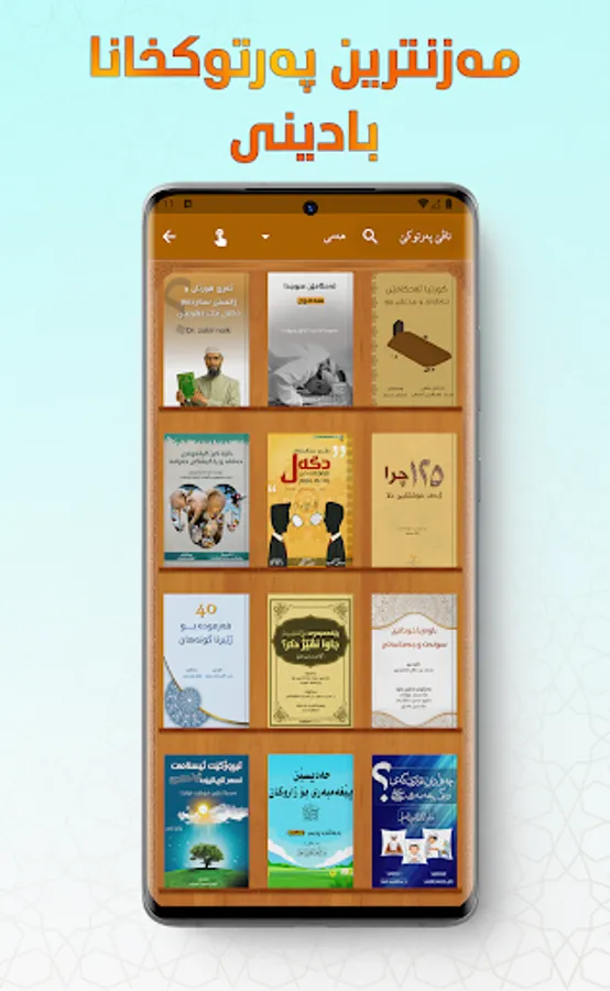 دوو: پەرتوكخانە، ل ڤى بەشى مە پتر ژ 200 پەرتوكێن ئاينى يێن هەمە جور ب بادينى يێن كرينە تێدا دگەل بەرگێن وان ب شێوێ