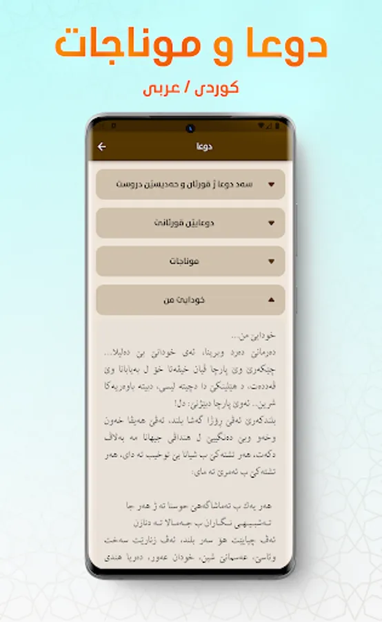 حەفت: دوعا : ب سەدەها دوعايێن دڤى بەشى دا ب زمانێ كوردى و عەرەبى ، ژ وان دوعايێن كو دقورئانێ دا يان ژى د حەديسێن صحيح دا هاتين. دگەل موناجاتان ب زمانێ كوردى.