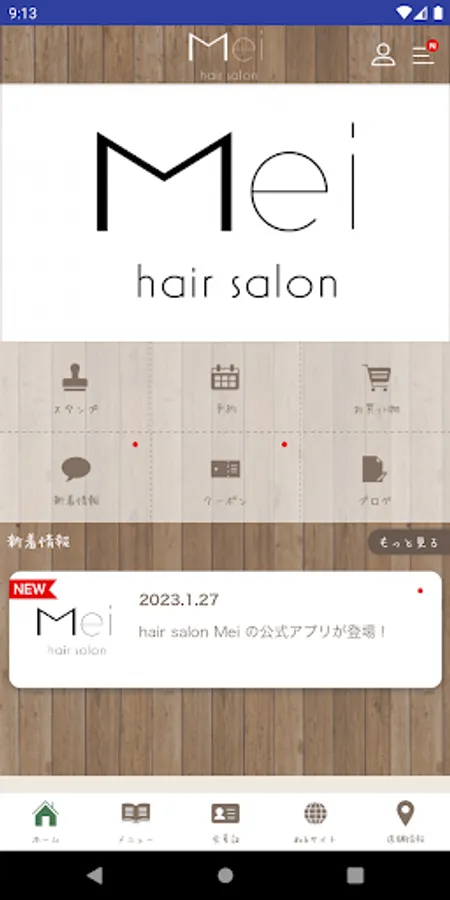 With this app, you can receive new information on "hair salon Mei" and special deals only for app users in real time.
