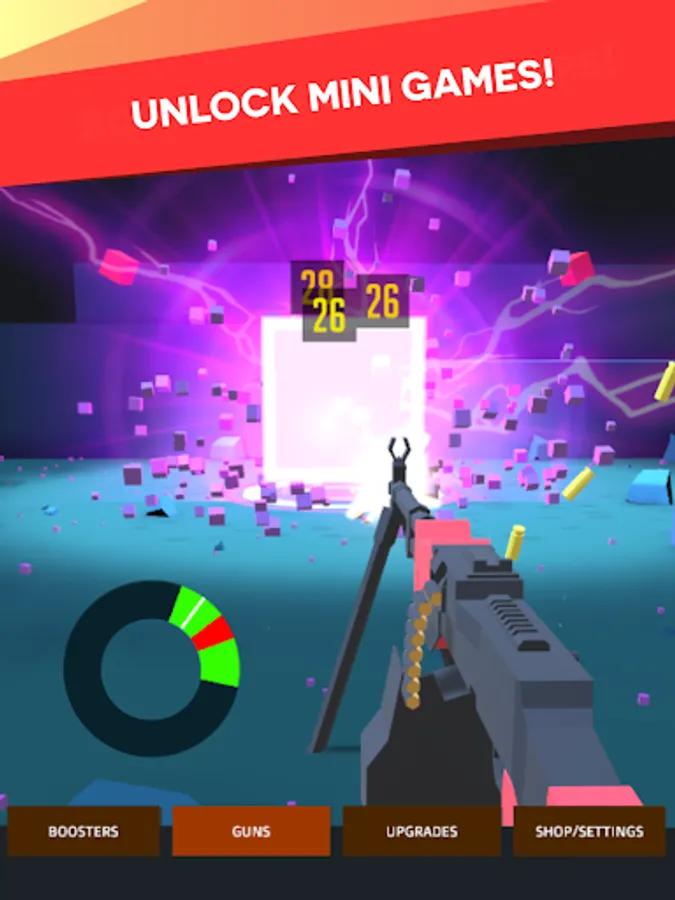 Tap to shoot. Unlock power-ups. Collect every gun!