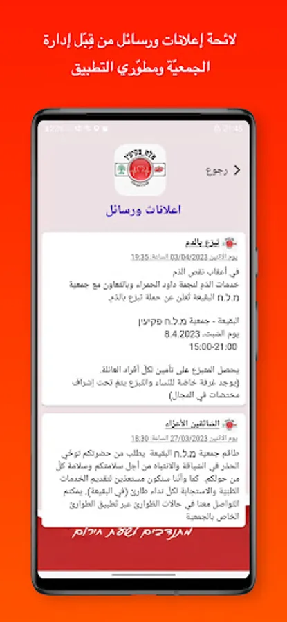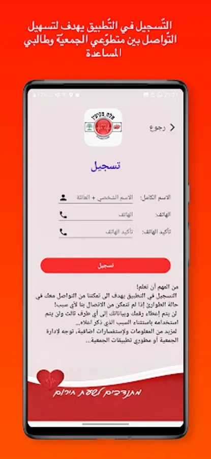 The emergency application of the Al-Baqi'a M.L. Association is intended for use by the residents of the Al-Baqi'a only,