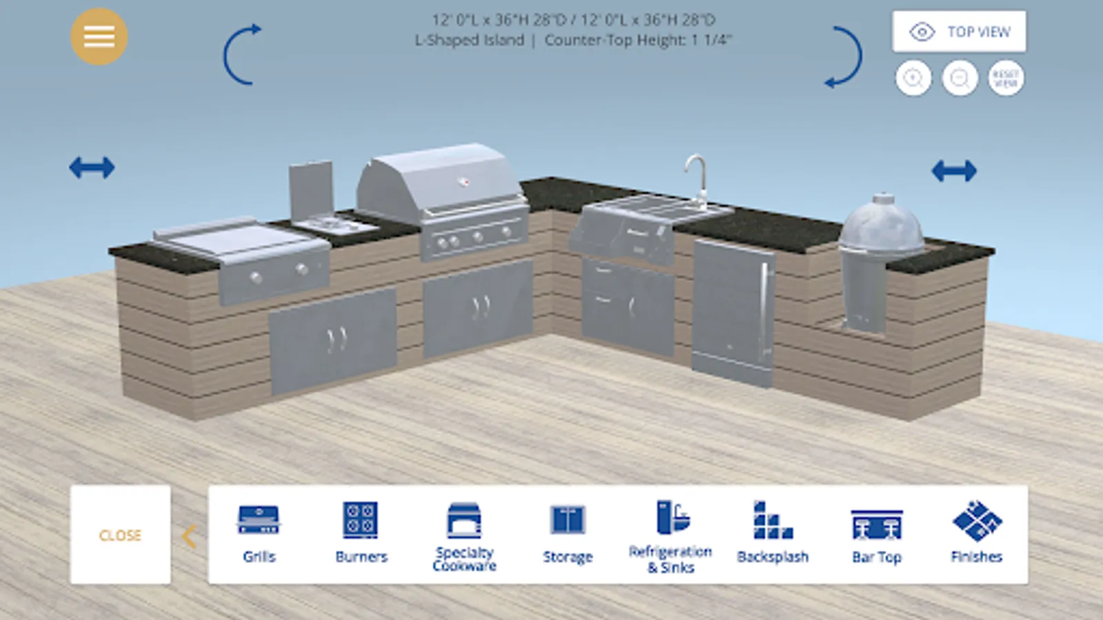 Let your imagination run wild in this portable outdoor kitchen designer. Start by choosing one of three kitchen shapes, choose your dimensions and explore the nearly 1000 product options available to populate your design.