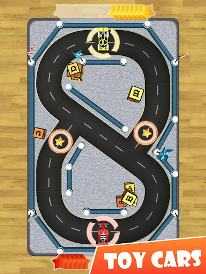 • Toy Race - an exciting checkpoint racing game. Test your reflexes and driving skills against your friends, collect stars and earn the golden cup!