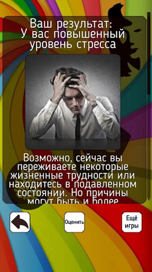 Do you want to know whether you have stress? Then install our test and get an answer to this question! This test will help you know whether you have a strong stress.