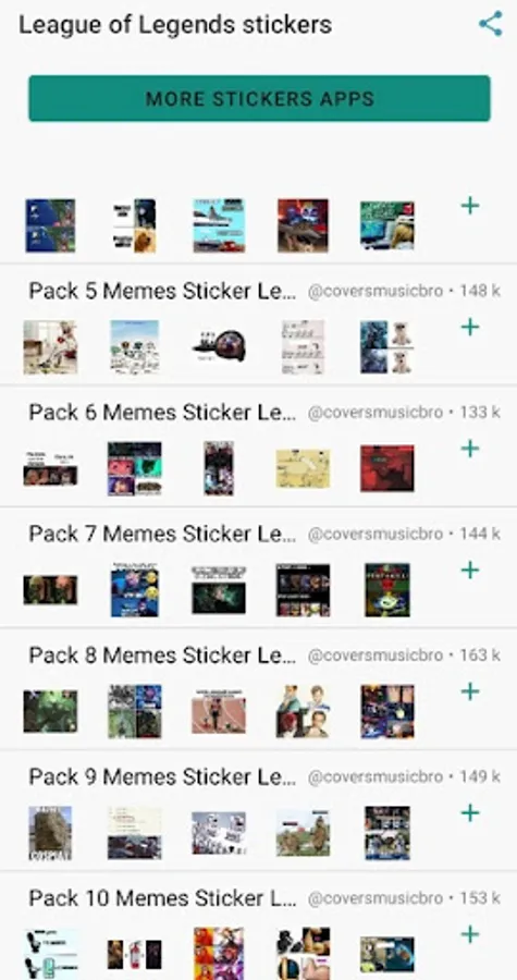 The application has Memes Stickers (Stickers) from the game League of legends (LOL). The Stickers can be downloaded to be able to use them. The application has 10 pack, that is, with 80 Stickers Memes of League of Legends and soon there will be more Stickers since it will be continuously updated so that you have new Stickers.